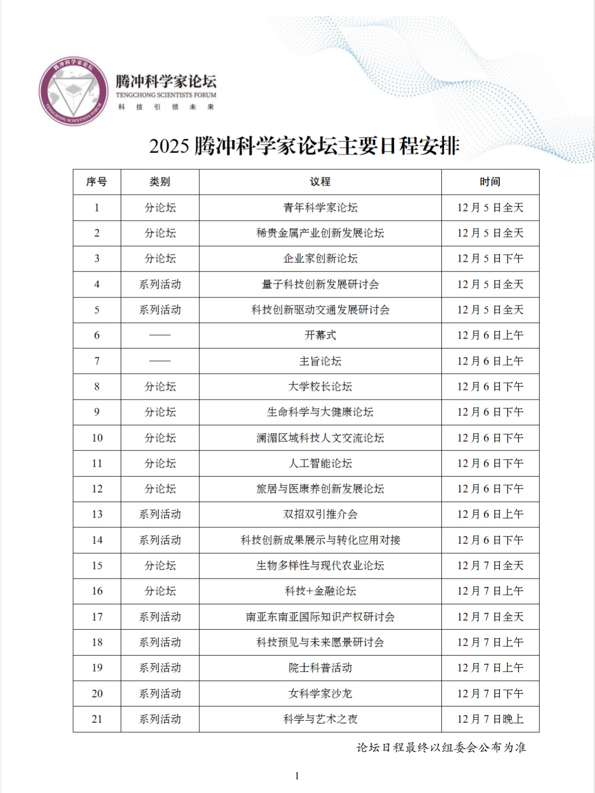 附件1:2025腾冲科学家论坛总日程安排