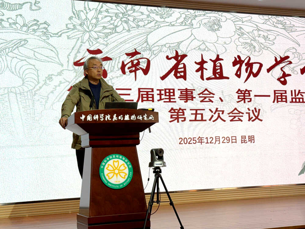 12月29日,云南省植物学会第十三届理事会第五次会议在昆明植物研究所召开。学会理事长孙航院士、副理事长普诺·白玛丹增研究员、杨永平研究员、王继华研究员、何霞红教授等48位理事和监事长周浙昆研究员以线下线上结合的方式参会,会议由孙航理事长主持。 中国科学院昆明植物研究所所长、党委书记普诺·白玛丹增研究员在致辞中表示,昆明植物所作为学会支撑单位,始终与学会在学术平台搭建和跨领域创新、科学传播、科技智库建设、科技工作者举荐及乡村振兴等方面紧密合作。本次会议将是对学会本届理事会的全面总结,也是未来发展的新起点,研究所会持续履行好支撑单位职责,为学会工作提供坚实保障,携手推动植物学科高质量发展。
